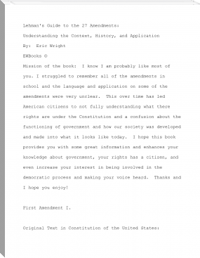 his book is about the 27 amendments to the United States Constitution. It includes: -Language that's easy to understand -Text of Amendments -Application of Amendments -The History behind each amendment -Supreme Court Cases that influenced each amendment -Interesting Facts that you may not know This book is great for the student who is trying to learn the Constitution and any professor or person interested in politics to gain a better understanding of how our country was founded and developed,