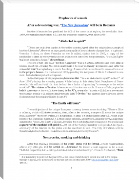 THE SINFUL EARTHLY LIFE WILL BE OVER AND THE HOLY, DIVINE AND ETERNAL ONE WILL BEGIN. ALL THE NATIONS ARE ABOUT TO SEE AN EXEMPLARY LIFE IN ROMANIA, COUNTRY WHICH WILL BE RULED BY THE SAINTS ARRIVED FROM HEAVEN INTO COMMON BODIES: ELIJAH, ENOCH, AND JOHN THE EVANGHELIST. THEY WILL MAKE ALL THE NECESSARY ADJUSTMENTS without despotism, but WITHOUT MERCY, because there are now “people“ who own positions through which they stop the proper working of the country.
